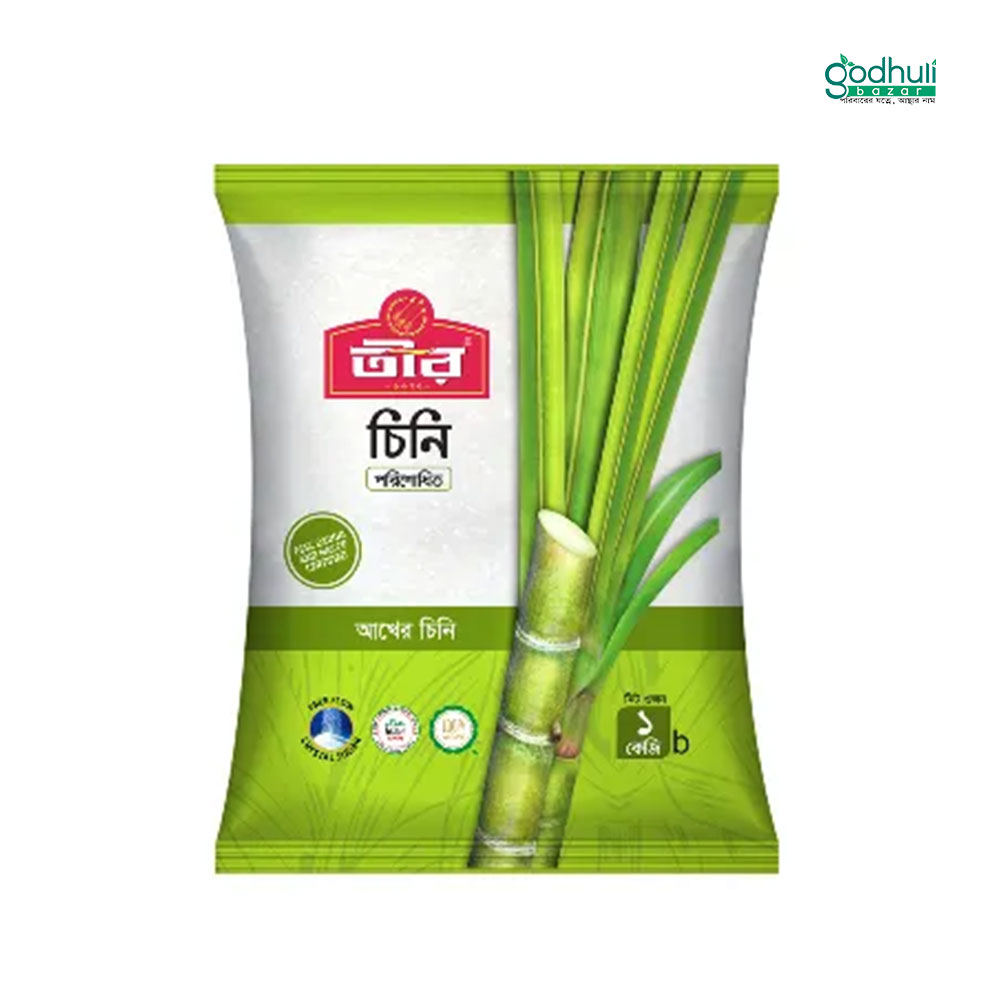 তীর চিনি বাংলাদেশের অন্যতম বিশ্বস্ত ও জনপ্রিয় পরিশোধিত চিনি, যা আধুনিক প্রযুক্তি ও কঠোর মাননিয়ন্ত্রণের মাধ্যমে প্রস্তুত করা হয়। উন্নত মানের আখ থেকে উৎপাদিত এই চিনি সম্পূর্ণ সাদা, পরিষ্কার ও দানাদার, যা খাবার ও পানীয়তে সহজে মিশে যায়।